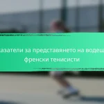 Ключовите показатели за представяне на тенисистите включват процент на спечелени мачове, асове и двойни грешки, реализирани и срещнати брейк точки, процент на първи сервиси и дължина на разиграванията. Тези метрики предоставят ценна информация за ефективността на играча и общата стратегия на играта.